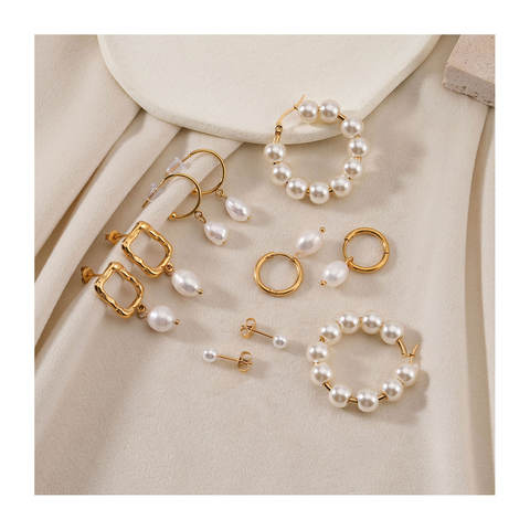 באיכות גבוהה אלגנטי משובח בארוק מים מתוקים פנינה 18k מצופה זהב 18k נירוסטה ירידה חישוק עגילים